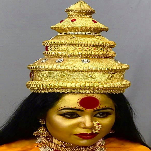 Conceptual makeup - Woman in gold flower crown, fa...
